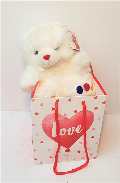 An adorable, soft Valentines Teddy Bear in bag. Teddy size 26cm